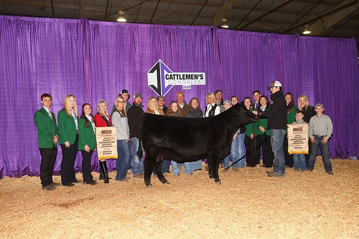 The 2023 Angus Foundation Heifer Package, donated by Coleman Angus of Charlo, Mont., was purchased by Ingram Angus LLC of Pulaski, Tenn., for $130,000 Jan. 6, at Cattlemen’s Congress in Oklahoma City, Okla.