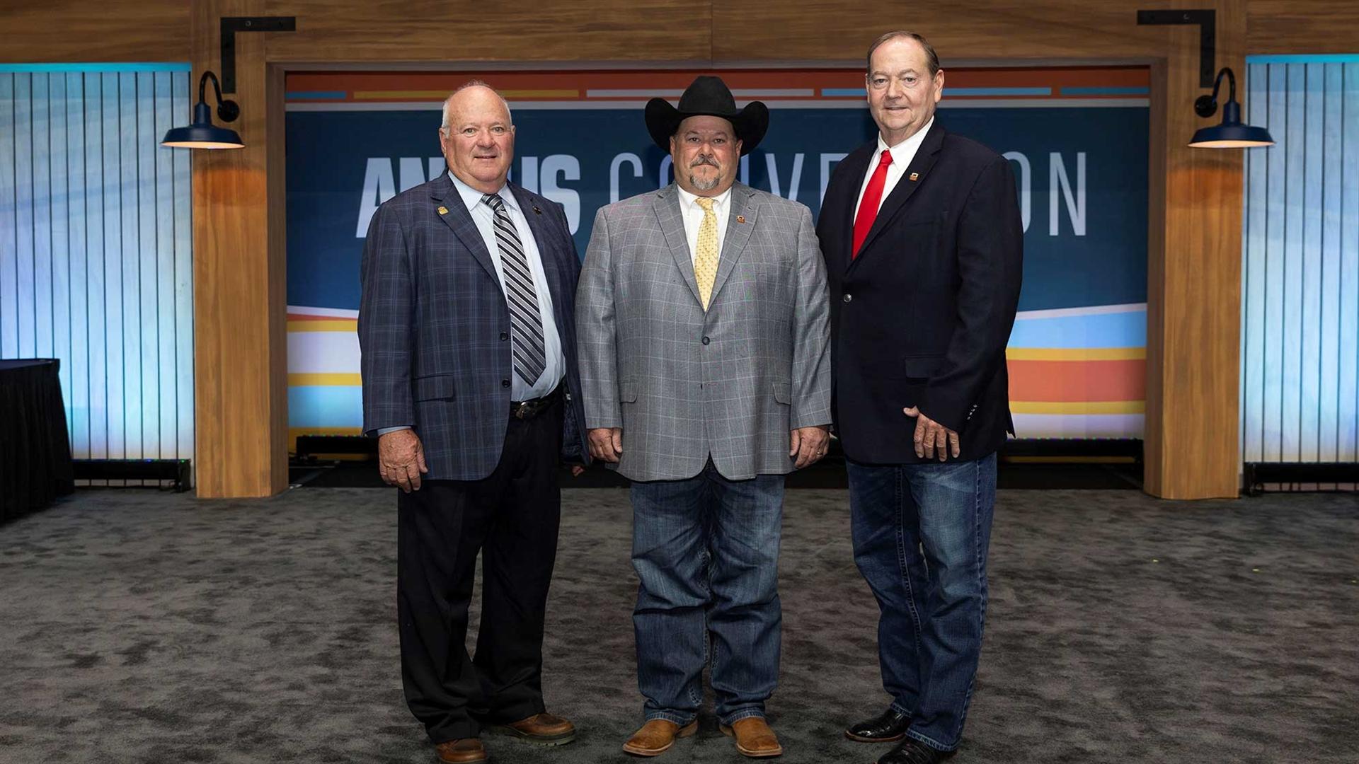 The 2023-2024 American Angus Association newly elected leadership (from left) are President Barry Pollard, Vice President Jonathon Perry and Treasurer Jim Brinkley.