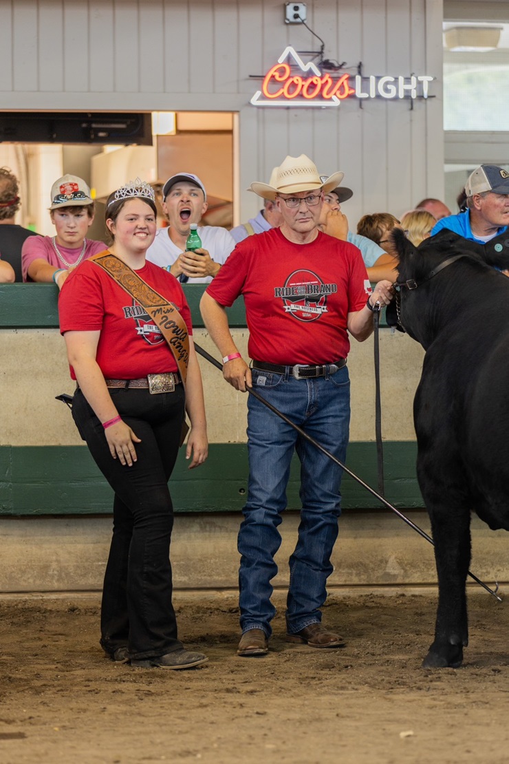 Mark McCully, CEO of the American Angus Association, came out of showring retirement to participate in the fundraiser. He joined 17-year-old Cheyenne Houk of Monroe County along with her steer, “The Business,” for a day of fun, competition and giving back. With Houk reigning as this year’s Miss Iowa Angus Queen and a registered Angus steer being shown in the event for the first time in quite a while, it was important to find the perfect “celebrity” showman.
