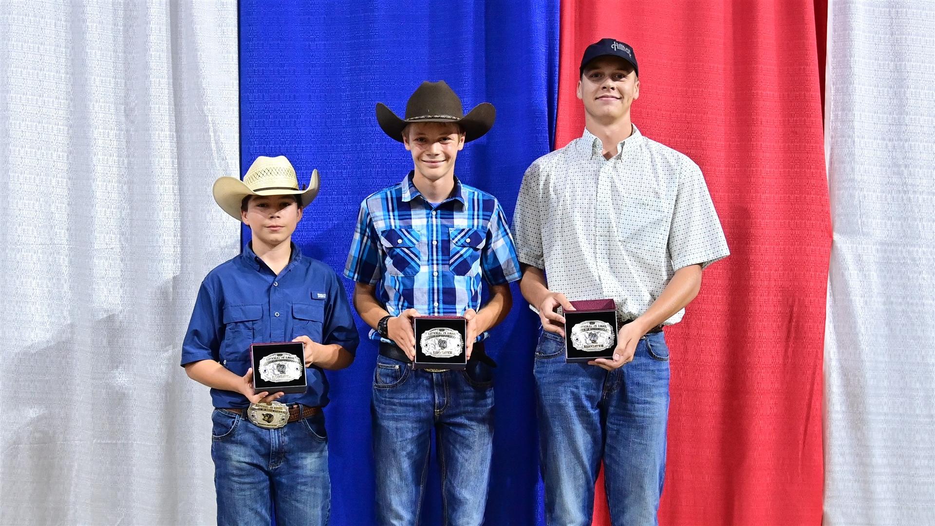 Each winner received a belt buckle, as well as cash awards: $750 for the senior division winner, $500 for the intermediate division winner and $250 for the junior division winner.