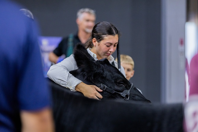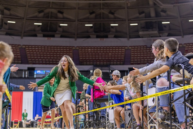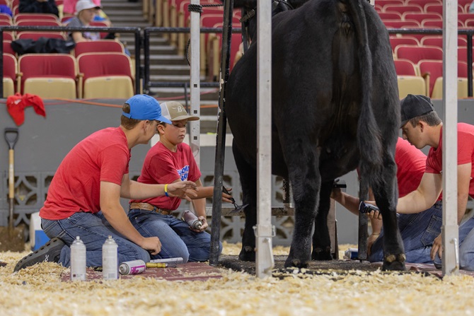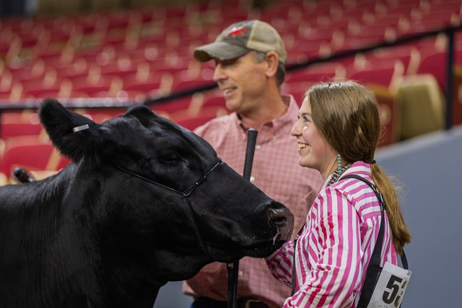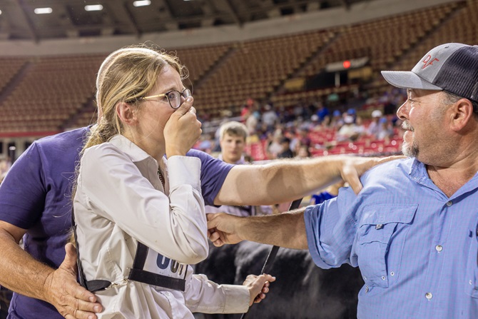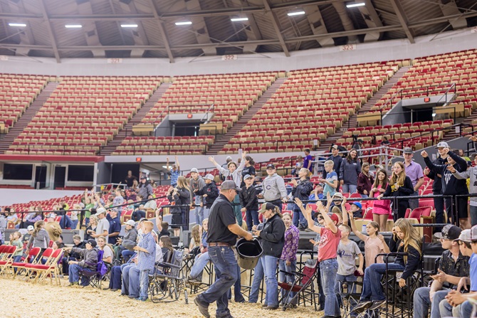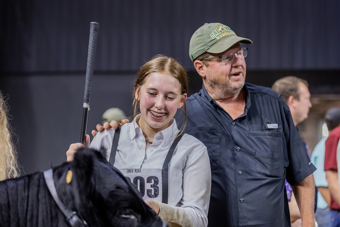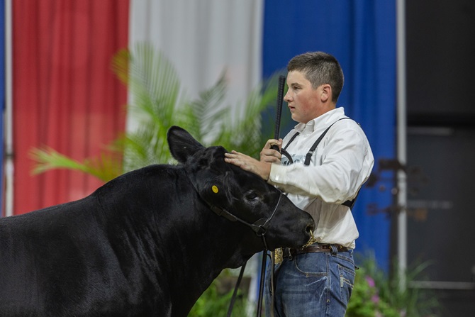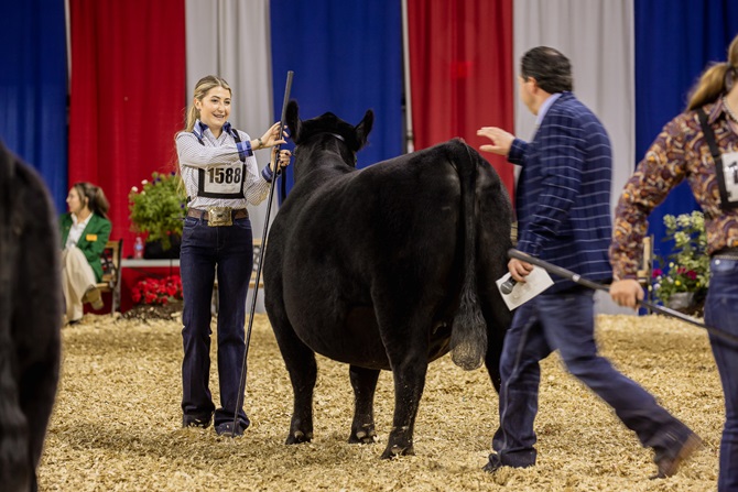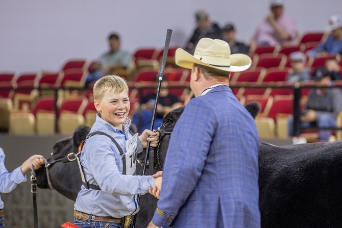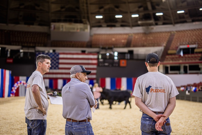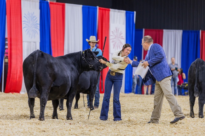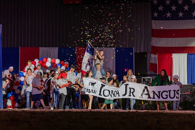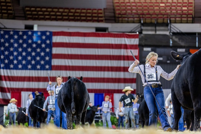 The weekday morning featured a royalty reception for Angus queens and princesses. National Junior Angus Board (NJAB) candidates began their bids for the green coat, mingling with their peers in the barns. It was a day of education, as the Certified Angus Beef (CAB) team offered a Beef Quality Assurance (BQA) training course and the American Angus Association launched BEEF Academy. Games and contests were featured in an AMP session before contests kicked off. Juniors competed in the prepared public speaking, auctioneering and cattle judging contests. A favorite of the week, juniors paraded their state pride during Opening Ceremonies. The evening concluded with a junior dance in the showring.