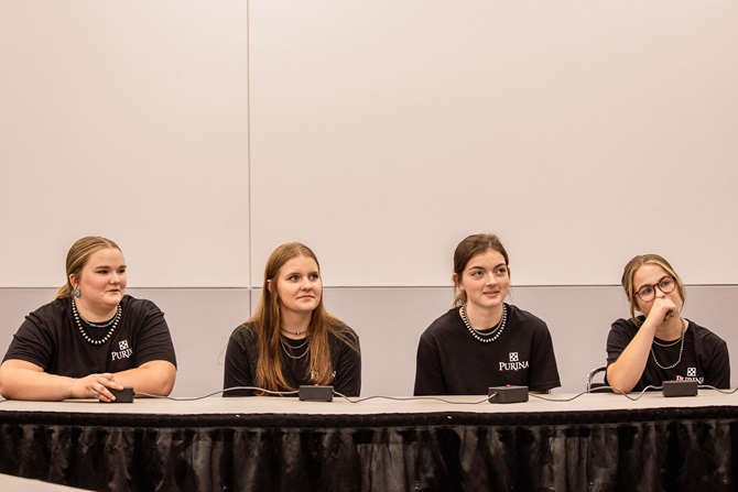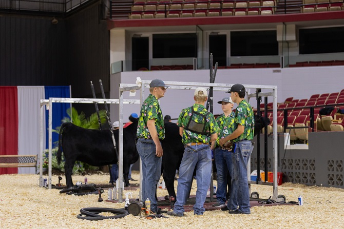 Before showcasing their skills in the ring, NJAA members bowed their heads in prayer. Wednesday was dedicated to NJAA breeding prowess, as both bulls and heifers were brought to compete in the bred-and-owned (B&O) show. In between classes, NJAA members took part in the extemporaneous public speaking, Skill-a-thon, team sales and quiz bowl contest. Women of The Business Breed also enjoyed time together during the American Angus Auxiliary’s social.