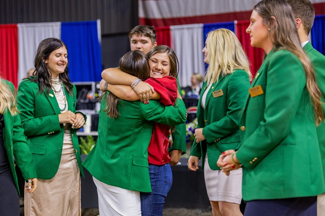 With no more contests to look forward to, juniors and their families put their focus on the cattle show. Steers and owned heifers kicked the day off. In between classes the Advisor of the Year and the Honorary Angus Foundation inductees were named. After a competitive final round, the top five showmen of the National Junior Angus Showmanship contest were named. Delegates cast their votes for the NJAB, and after awards and scholarships were handed out during the NJAA Awards Premier, the retiring NJAB members said goodbye. Ending the evening with a bang, the newest six green coats were welcomed by their peers.