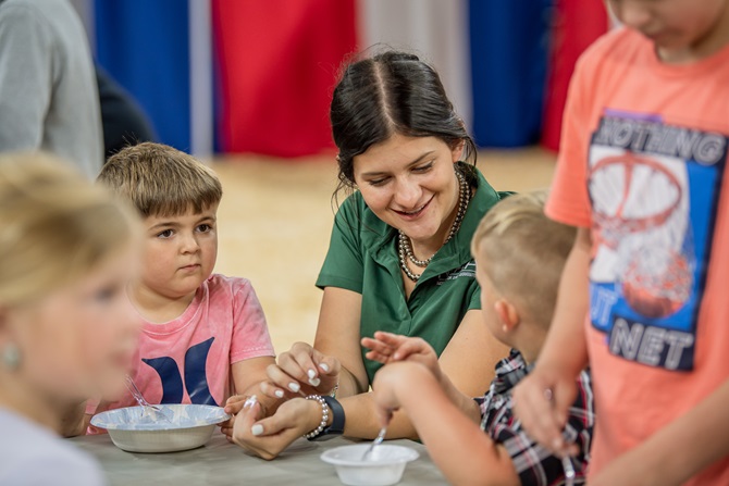 It was a busy day in the showring again. Cow-calf pairs completed the B&O show prior to the return of the Phenotype and Genotype Show (PGS). This year, bulls made their debut in the PGS competition. Buzzing in for the final round, quiz bowl teams competed. The younger generations of the Angus breed also showcased their presentation skills during the beef science poster contest. After a thrilling preliminary round of the National Junior Angus Showmanship contest, the Angus family came together for games and food at the Family Fun Night.