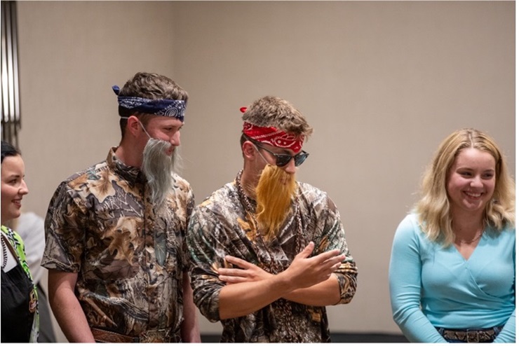 Junior board members Colter Pohlman and Jack Dameron channel their inner Duck Commander, as they present “Makin’ Cow Calls” — an Angus adaptation to the hit TV show Duck Dynasty.