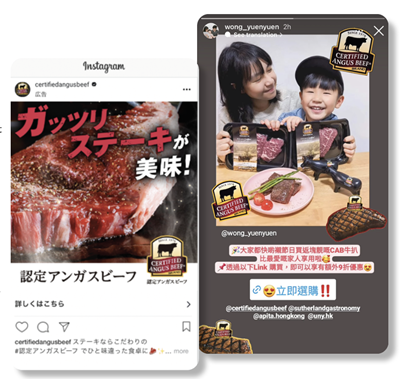 In Japan, the brand runs Instagram ads reflecting local pop culture designs and calls to action to find a licensed retailer. In Hong Kong, the brand enlisted the help of 12 micro-influencers to promote CAB’s local e-commerce retailer, Food Panda. The total reach was around 165,000 people during four days.