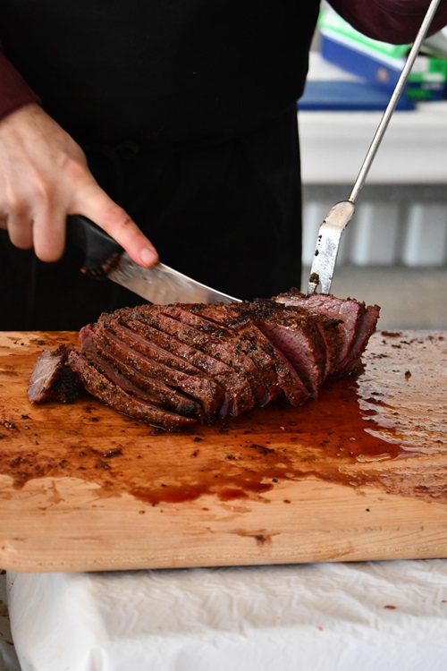 Trent’s sous-vide coulotte was the obvious choice for a main course. It’s featured in a steak lunch prior to the start of the sale, accompanied by sides like twice-baked potatoes and green bean casserole prepared by family members.