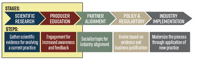 Highlighted by the yellow box, the RMY Working Group is currently in the scientific research and producer education stages. The long-term outlook is to enter industry implementation in the next 2-3 years.