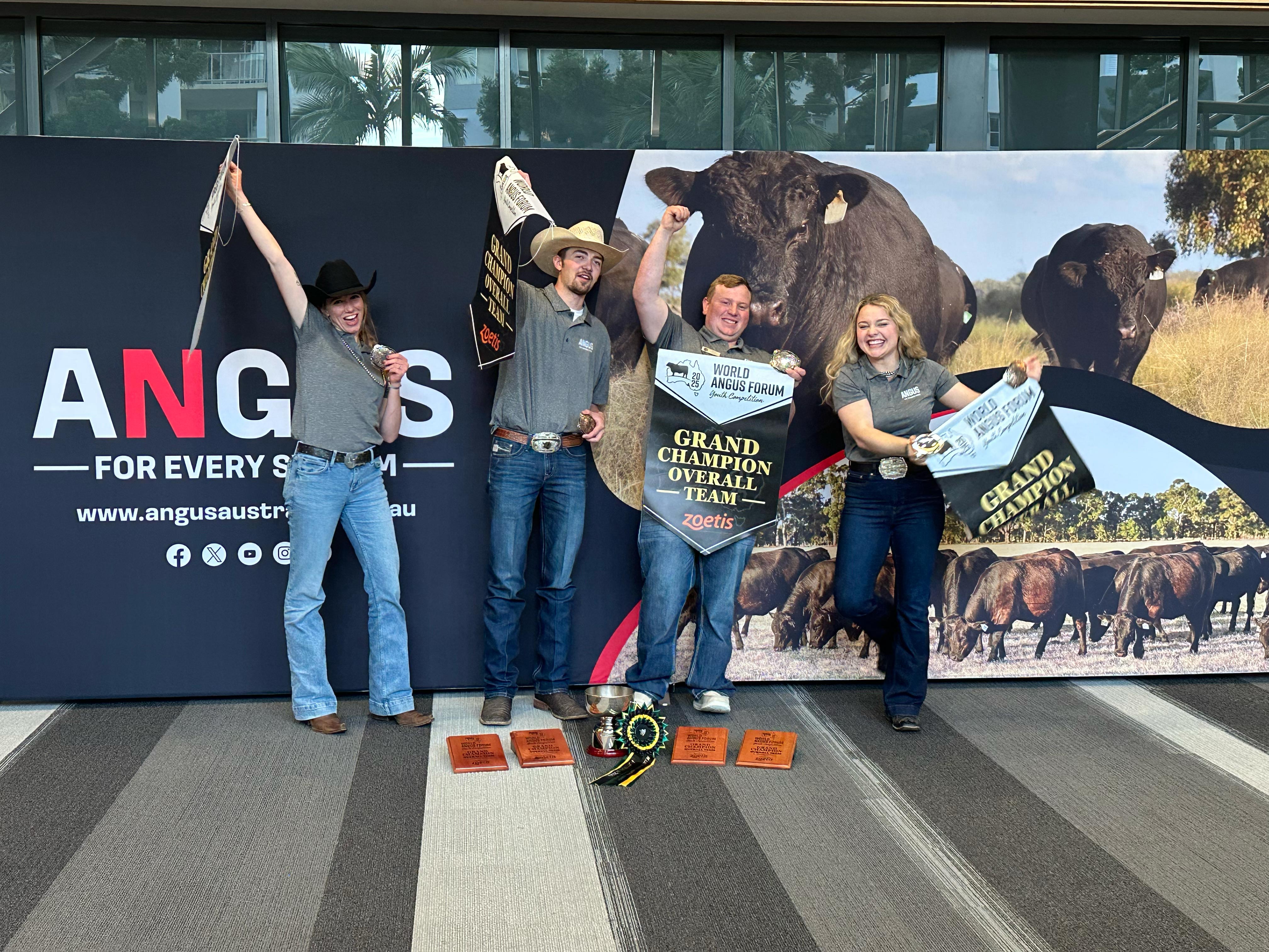 As the second-place team was announced in Australia during the World Angus Forum, the four juniors representing the American Angus Association in World Angus Youth Competition deflated. Knowing the talent pool was deep, Garrett Handsaker remembers looking towards his teammate, Tucker Stagemeyer, and admitting defeat. They both thought their moment had passed.