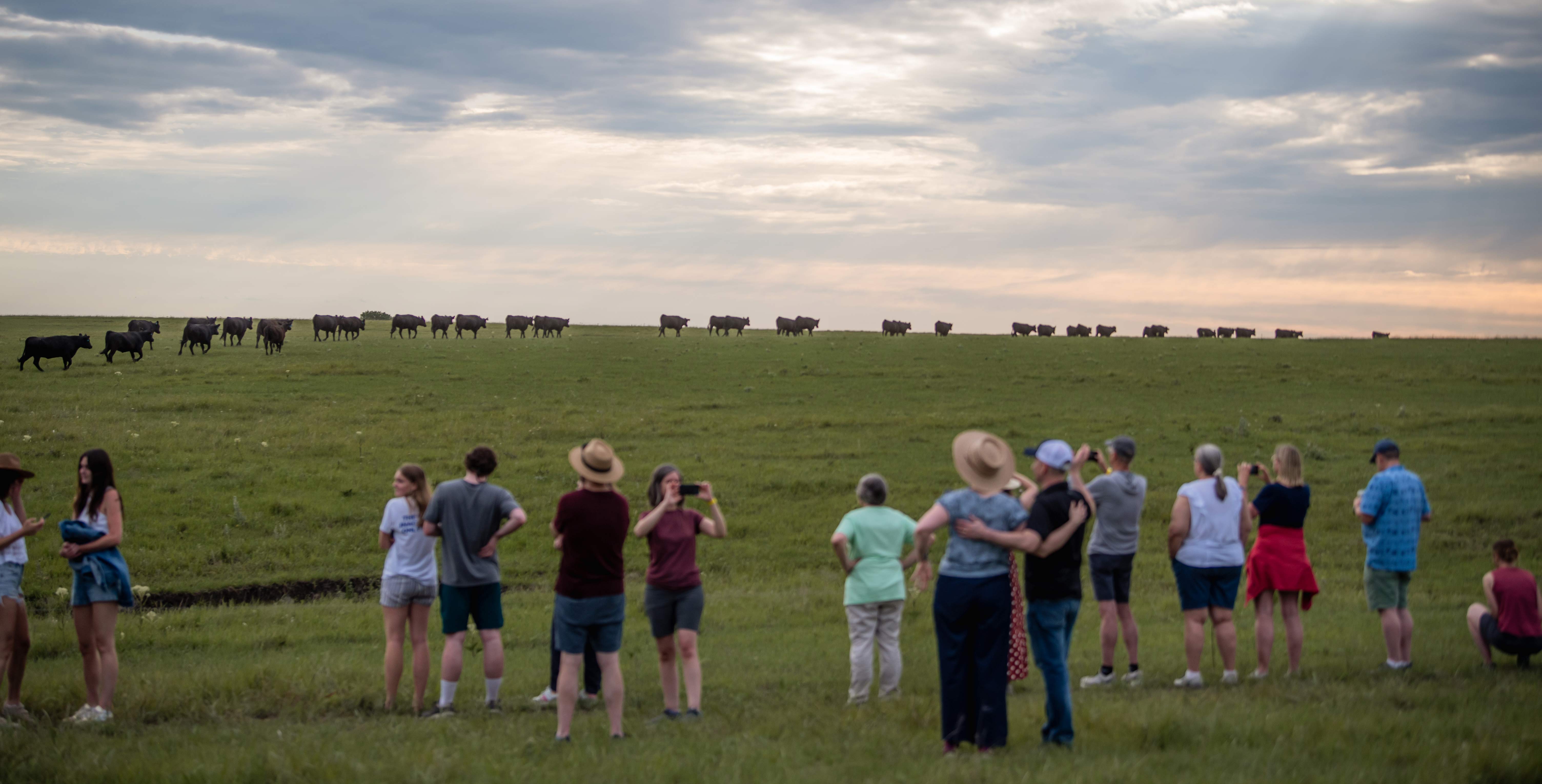 The sun is dipping low over the breathtaking Flint Hills, casting a golden glow across the prairie. The rich sounds of the Kansas City Symphony fill the air, playing John Williams’ “The Cowboys.” Behind them, cattle move steadily across the grassland, driven by cowboys on horseback.