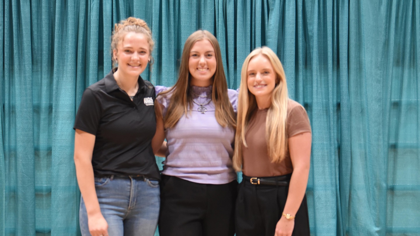 Jenna Whitaker (from left), Cassidy Strommen and Ashlyn Murdock helped provide media coverage during the 2025 National Junior Angus Show.