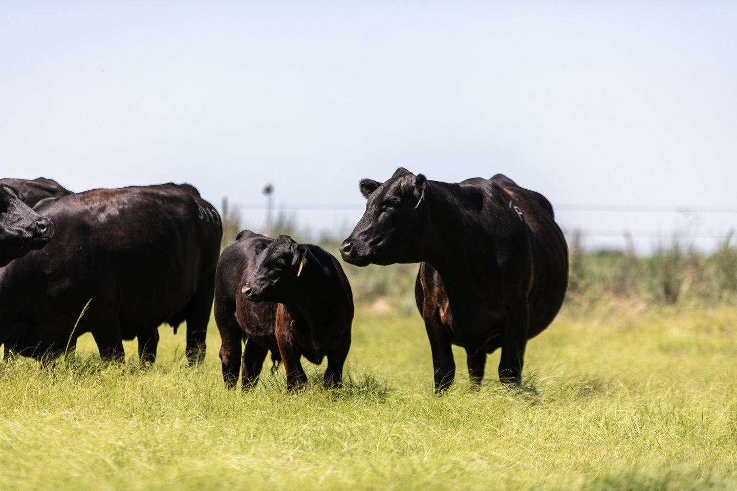 Full to the brim from an alfalfa ration every day and bountiful fields of lovegrass stretched out across the Texas Panhandle, the herd and their backdrop paint a pretty picture.