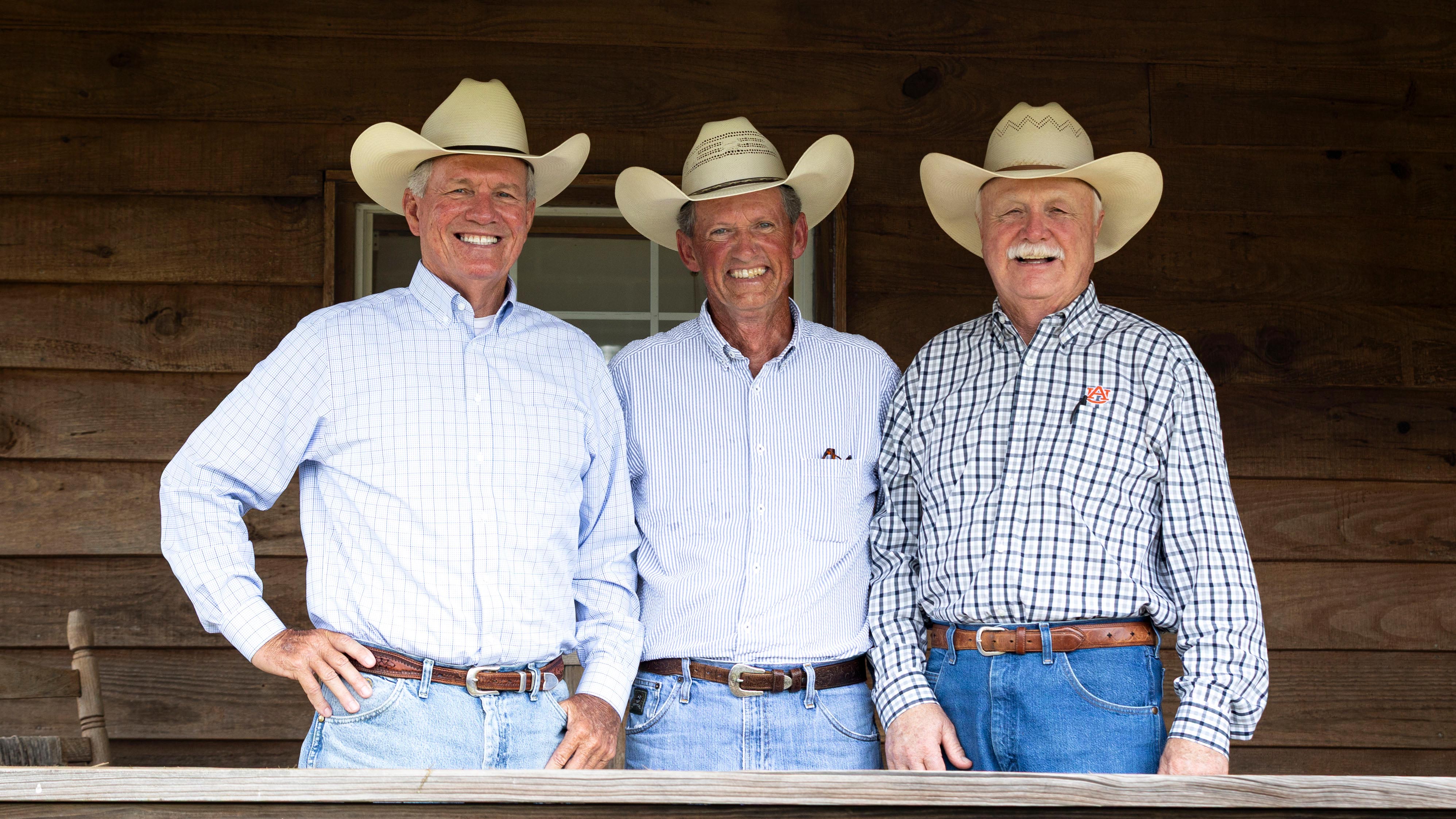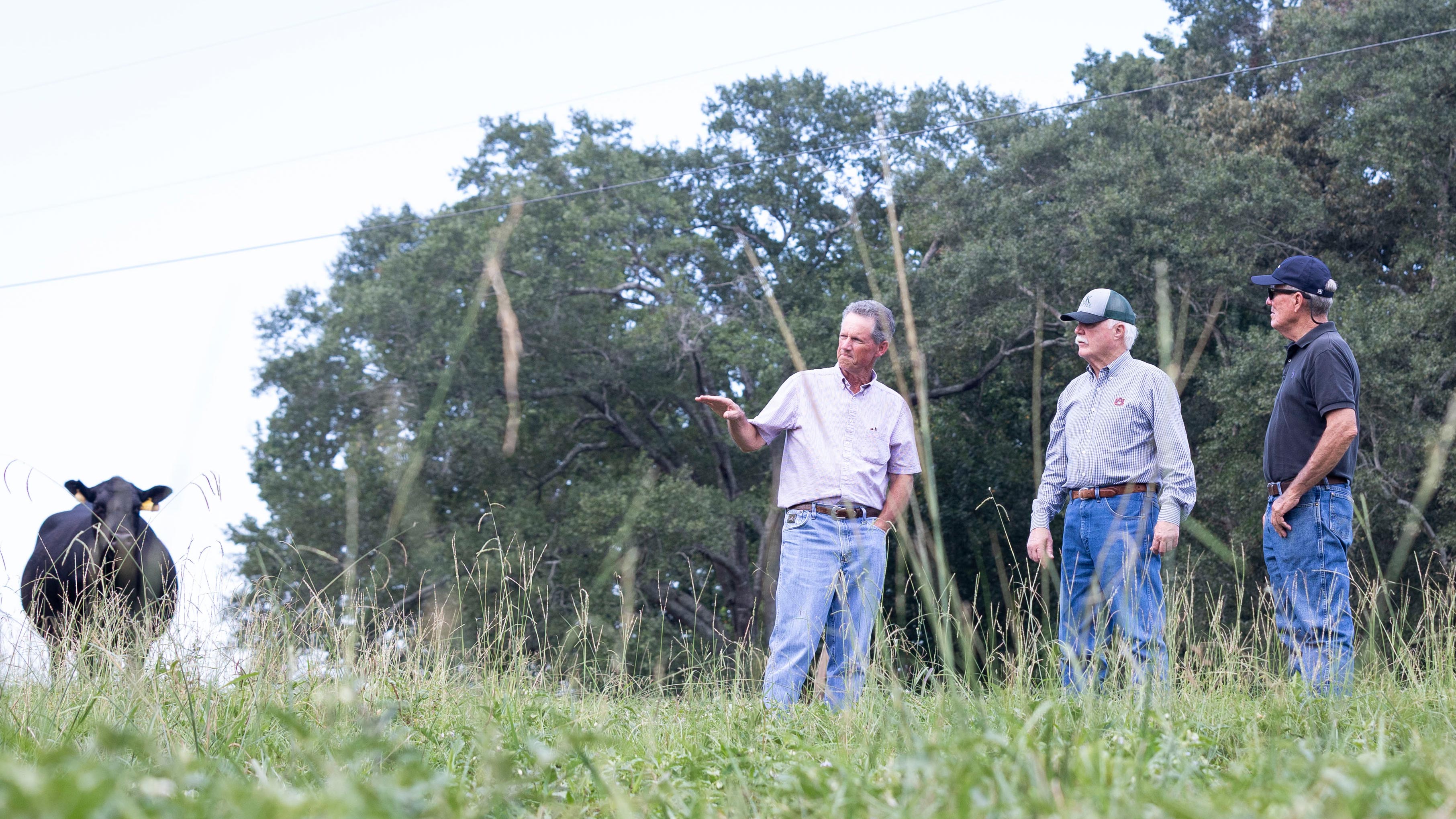 Mike, Richard Dyar and Randy Daniel talk cattle in the pasture at
