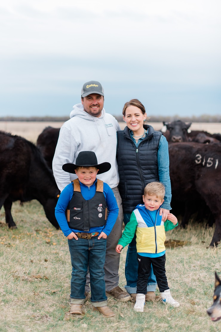 First-generation Angus breeders Tate and Calli Williams are raising the second generation, sons Jack (left) and Tommy (right), on their ranch in South Dakota.
