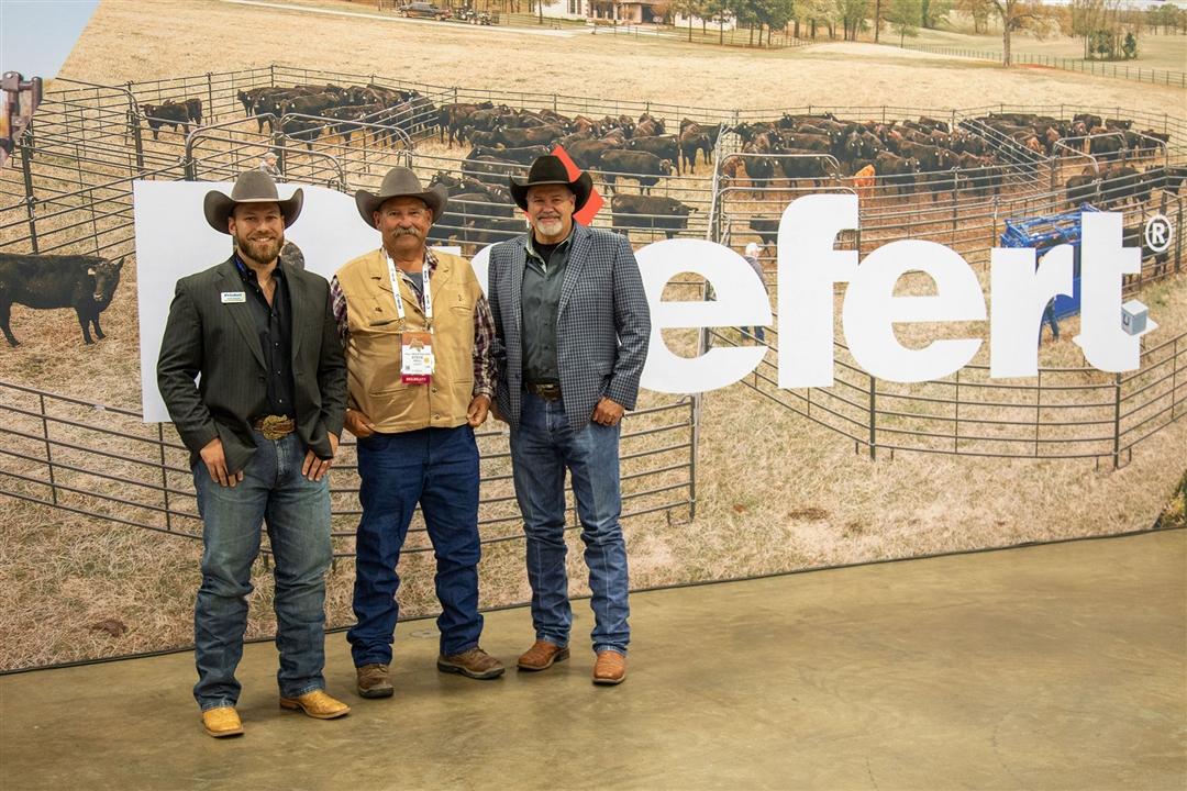 Cutline: Steve Knoll of Texas was the winner of the Priefert and Datamars Complete Cattle Handling System at the 2024 Angus Convention in Ft. Worth. Pictured from left are Cody Duncan, Priefert representative; Steve Knoll; and Todd Tieperman, Datamars representative.