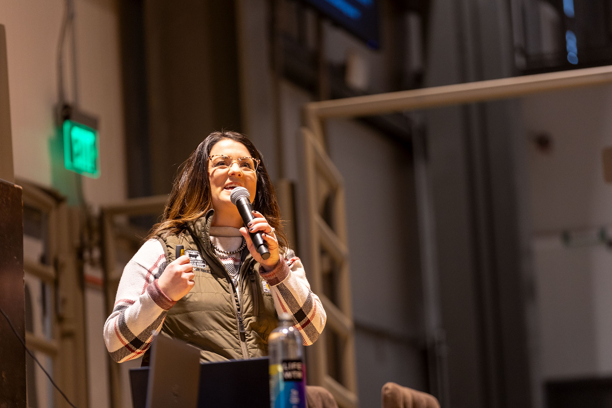 Cutline: Kara Lee, director of producer engagement at Certified Angus Beef , presents “Marbling, Feed and Fertility,” a discussion surrounding both maternal and carcass traits.