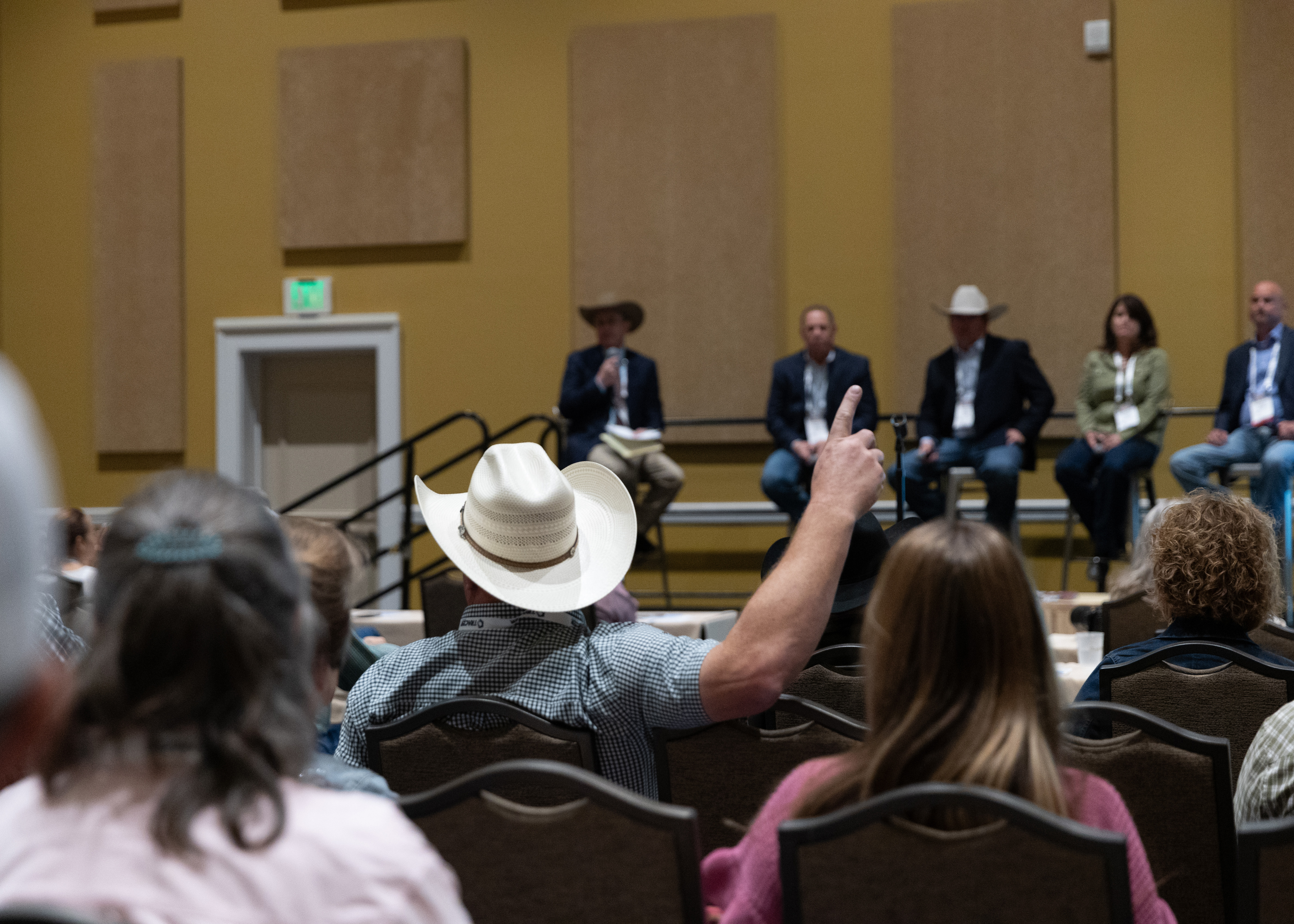 Cutline: Commercial cattlemen and association members participated in the Capturing Value panel session, asking questions about marketing strategies, at the 2023 Angus Convention.