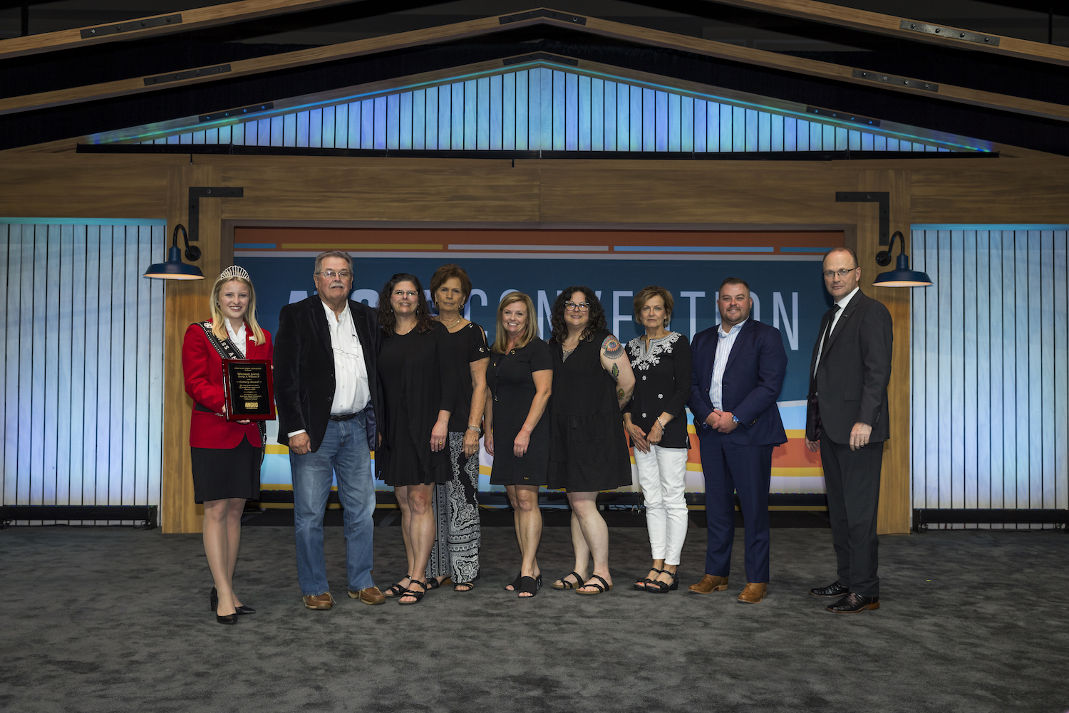 Cutline: Williams Angus was awarded the American Angus Association Century Award at the 2023 Angus Convention. Pictured from left are Kelsey Theis, 2023 Miss American Angus; Dr. Alex Williams; Dr. Staley Smith; Linda Carmichell; Bebe Reed; Betsey Gregg; Dottie Reed; Trey Reed; and Mark McCully, American Angus Association CEO.