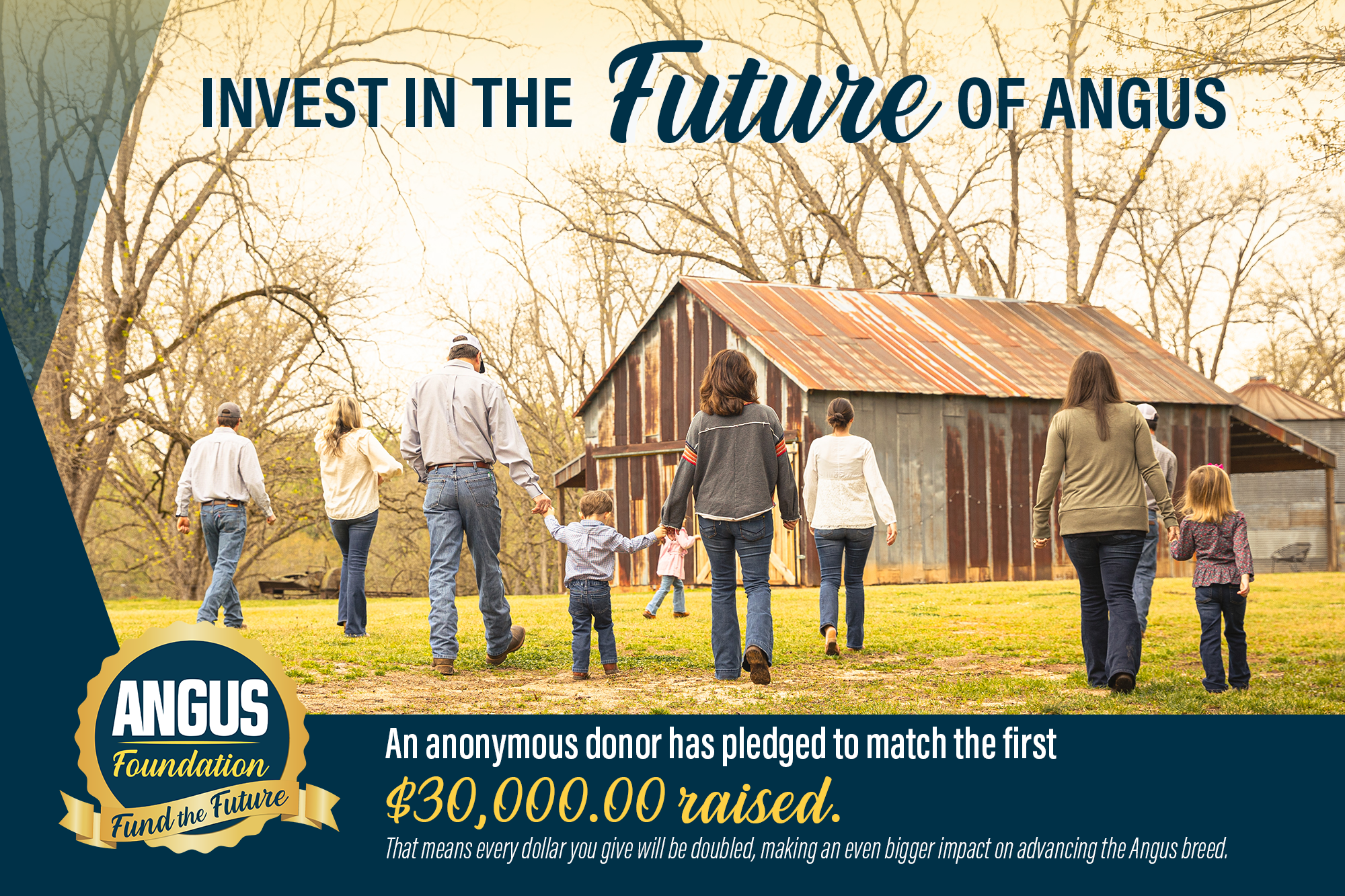 The Angus Foundation has a fantastic opportunity for the Fund the Future campaign! An anonymous donor has pledged to match the first $30,000.00 raised. That means every dollar you give will be doubled, making an even bigger impact on advancing the Angus breed.