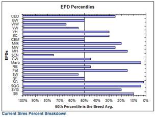 feature simply gives producers a snapshot of an animal’s ranking for EPDs and